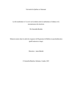Beaulne, Samantha (2025). Le rôle modérateur de l'anxiété sur la relation entre la maltraitance à l'enfance et la reconnaissance des émotions. Mémoire. Gatineau, Université du Québec en Outaouais, Département de psychoéducation et de psychologie, 57 p.