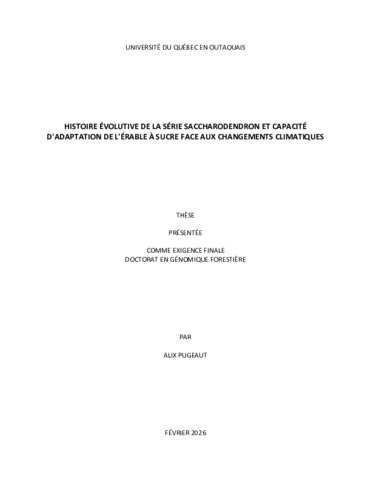 Pugeaut, Alix (2026). Histoire évolutive de la série saccharodendron et capacité d'adaptation de l'érable à sucre face aux changements climatiques. Thèse. Gatineau, Université du Québec en Outaouais, Département des sciences naturelles, 169 p.