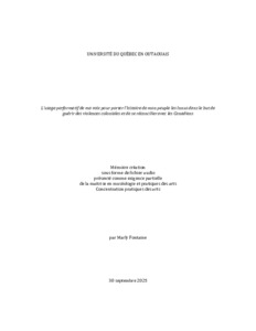 | Informations complémentaires: | Mémoire création sous forme de fichier audio. Le téléchargement peut prendre un certain temps. Si vous rencontrez des difficultés, n’hésitez pas à nous écrire à bibliodepot@uqo.ca. |