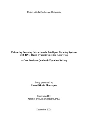 Moustapha, Ahmat Khalid (2025). Enhancing Learning Interactions in Intelligent Tutoring Systems with RAG-Based Dynamic Question Answering : A Case Study on Quadratic Equation Solving. Essai de deuxième cycle. Gatineau, Université du Québec en Outaouais, Département d'informatique et d'ingénierie, 75 p.